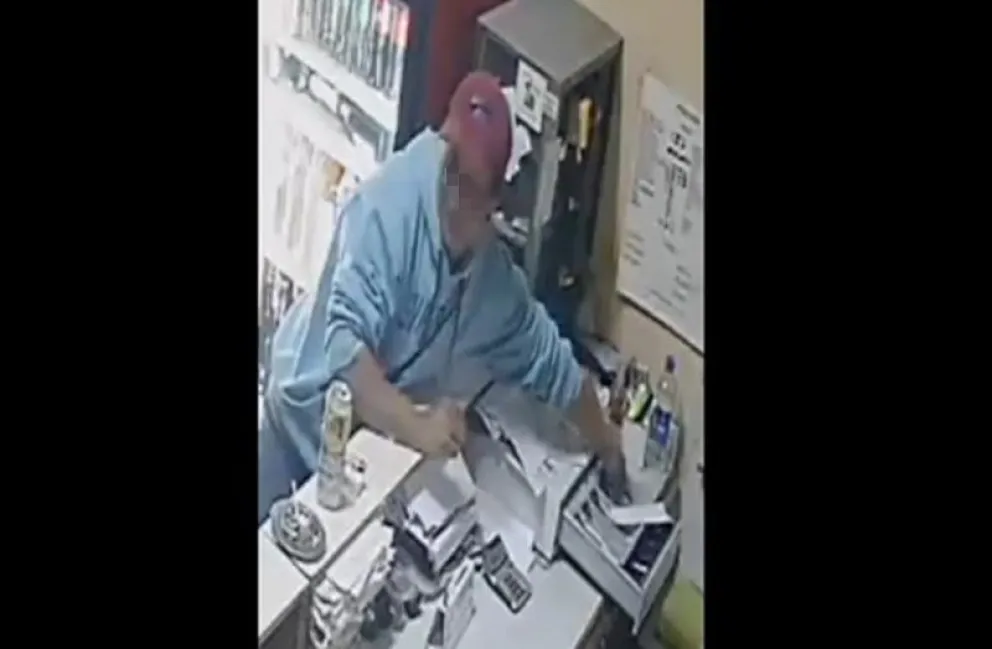 El video muestra el exacto momento en que toma el dinero. Se ubica al lado del mostrador, estira su brazo y abre la caja registradora, donde se apoderó de todos los billetes que fue encontrando.