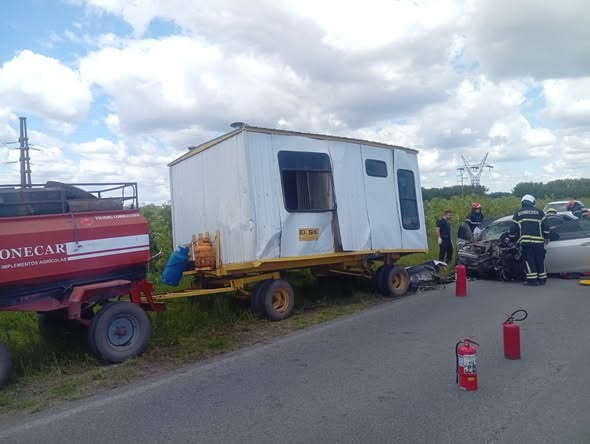 El hecho ocurrió cuando un automóvil Toyota Corolla colisionó desde atrás a una casilla rodante marca El Sol que era remolcada por un tractor Pauny Brioso.
