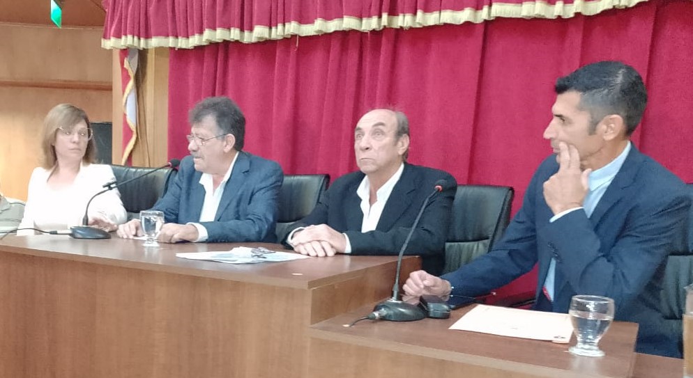 Finalizado el discurso que brindó Alianiello, el titular del HCD junto a los presidentes de bloque se dirigieron a buscar al Jefe Comunal que los aguardaba en la oficina del presidente del Cuerpo.