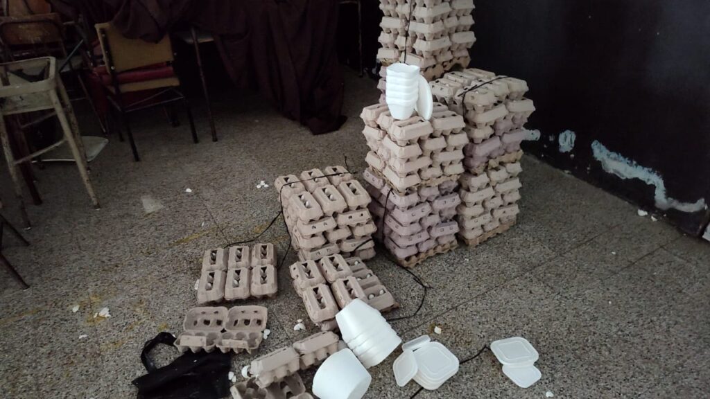 Los daños también alcanzaron el SUM, donde rompieron alrededor de 400 huevos y leche en polvo y arrojando los huevos en el baño, entre otros destrozos. Afortunadamente, en esta oportunidad no se registró el faltante de objetos, por lo que todo apunta a una acción con el único objetivo de provocar daños.